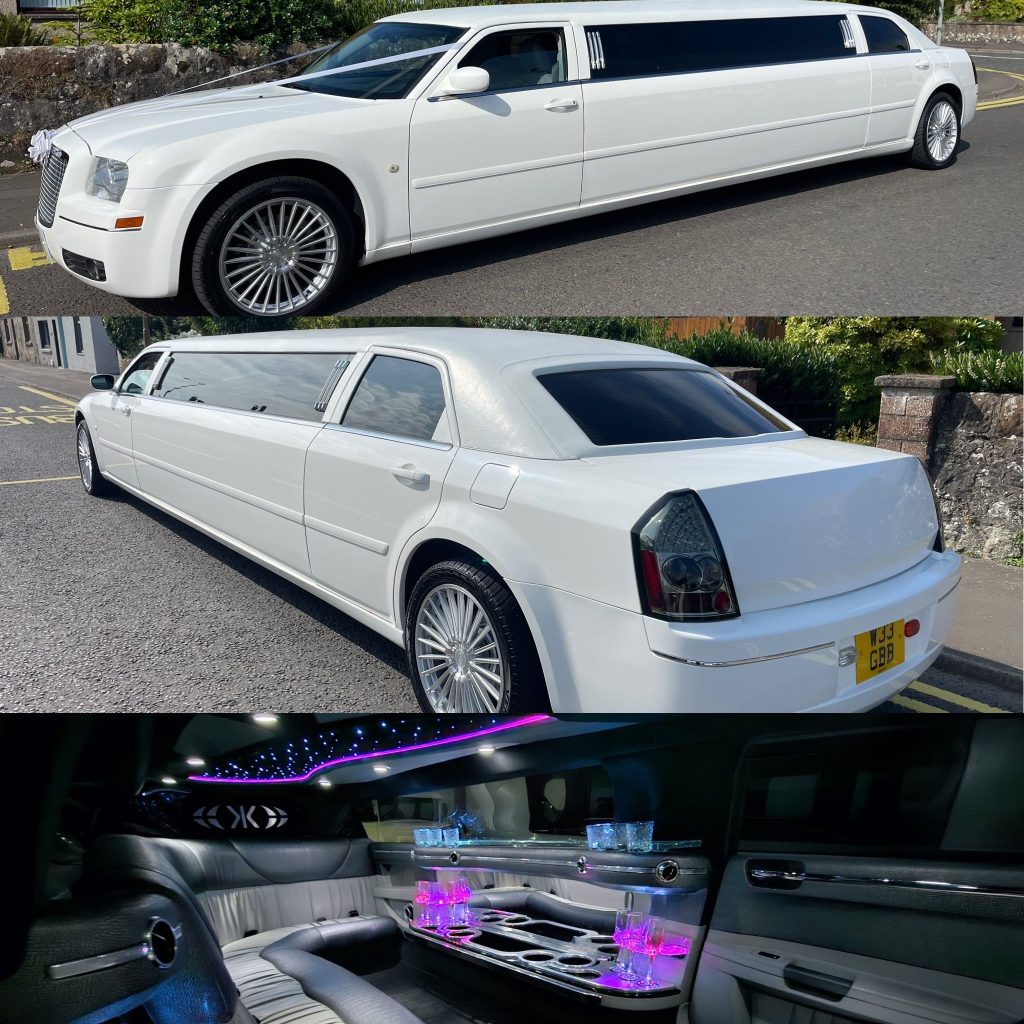 White new shape Chrysler 300 Tiffany Coachworks limousine